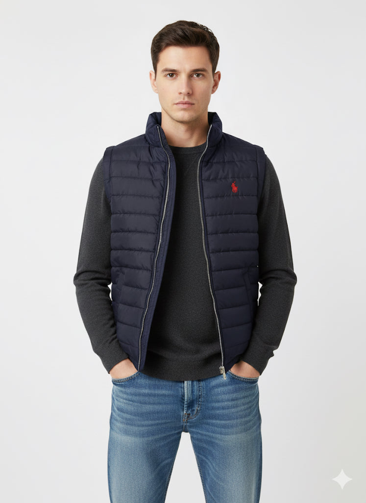 Men’s sleeve less puffer jacket Blue polo